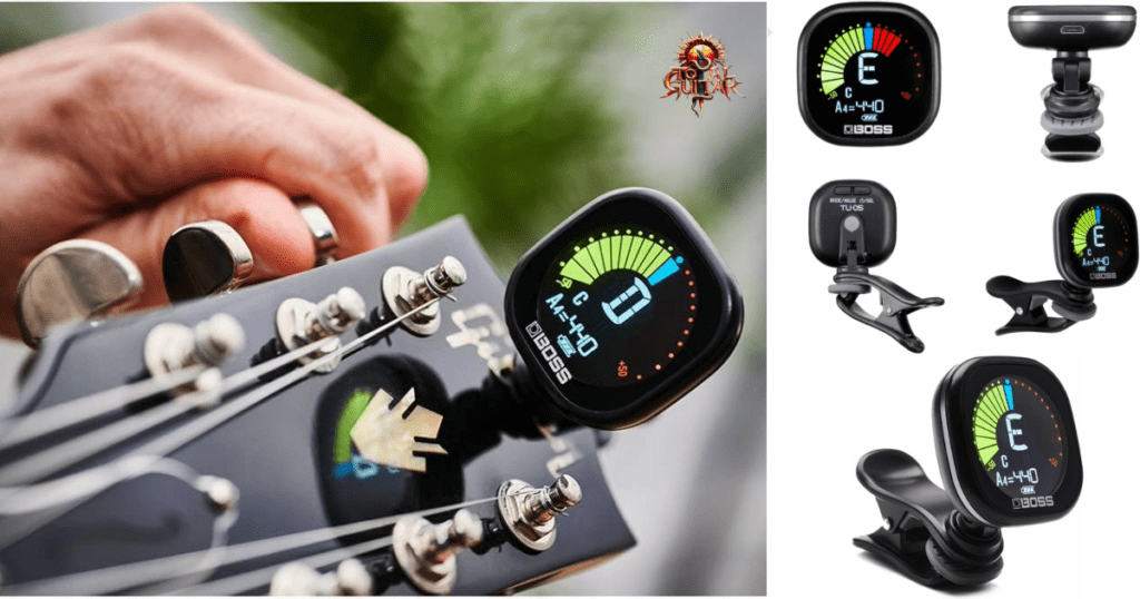 - Afinadores de clipe: Pequenos e práticos, eles se prendem ao cabeçote da guitarra e detectam as vibrações das cordas, isolando o som de ruídos externos. São ideais para a prática diária e para músicos que precisam de portabilidade.
